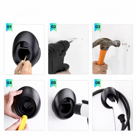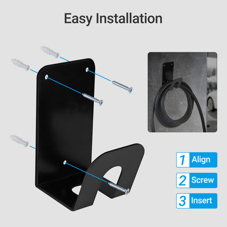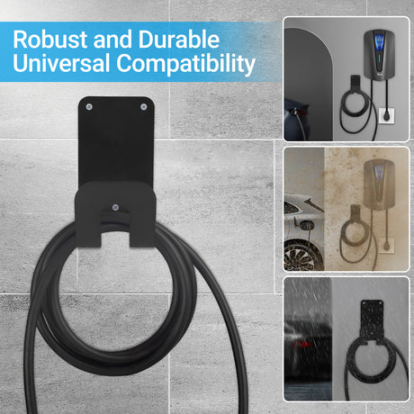 EV Laadkabel Houder – Wandmontage Zwart | Universeel Type 2 | Inclusief Montageset