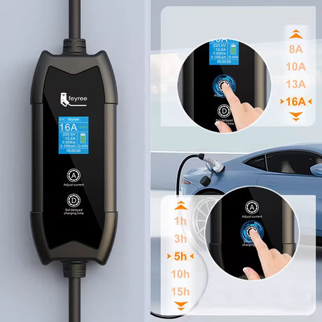 Feyree Mobiele Thuislader 3.7kW Type 2 IP65 Waterdicht 16A 1 Fase 5 Meter 8A/16A Schakelbaar