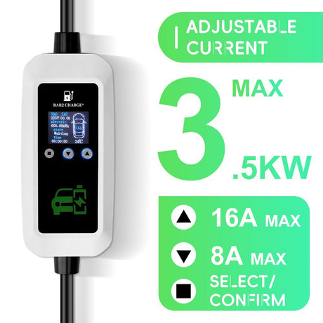 Bar2Charge Mobiele Thuislader 3.7kW IP65 Waterdicht 16A 1 Fase | 3.5 Meter Type 2 8A/16A Schakelbaar