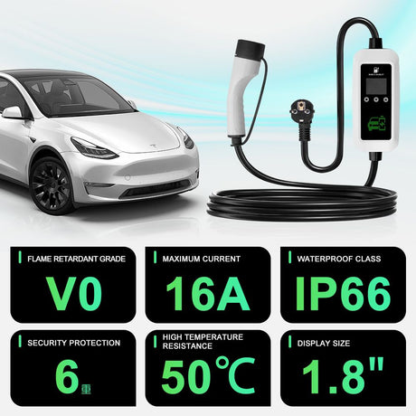 Junsun 3,7kW Mobiele EV Lader Type 2 6–16A IP67 Uitgesteld Laden