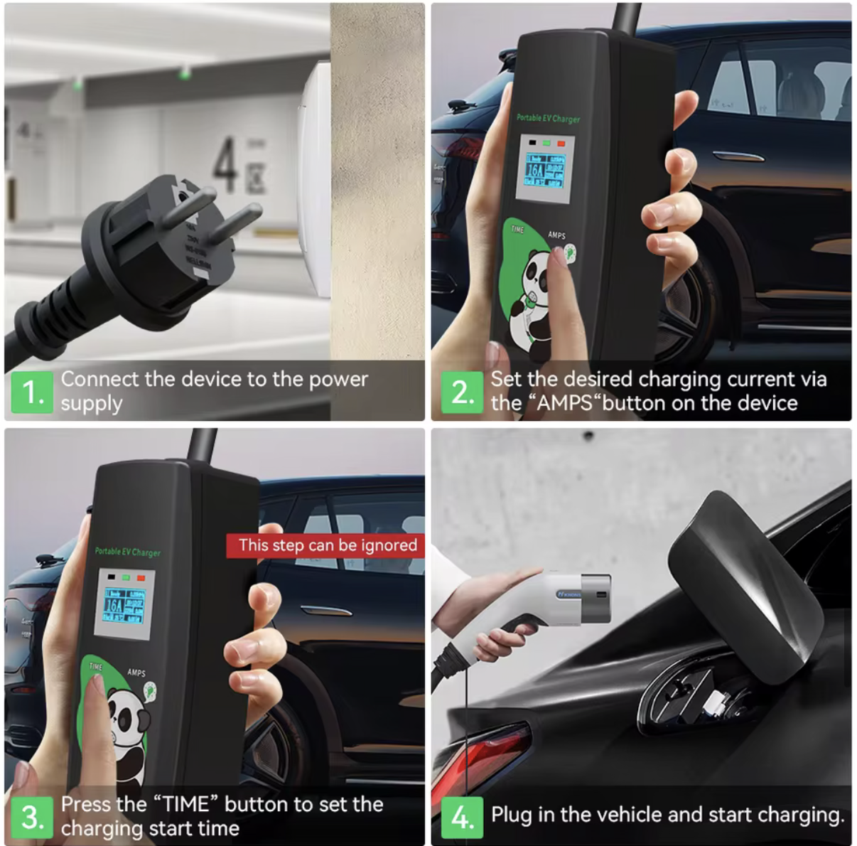 - Starttimer: laden instelbaar na 1–9 uur