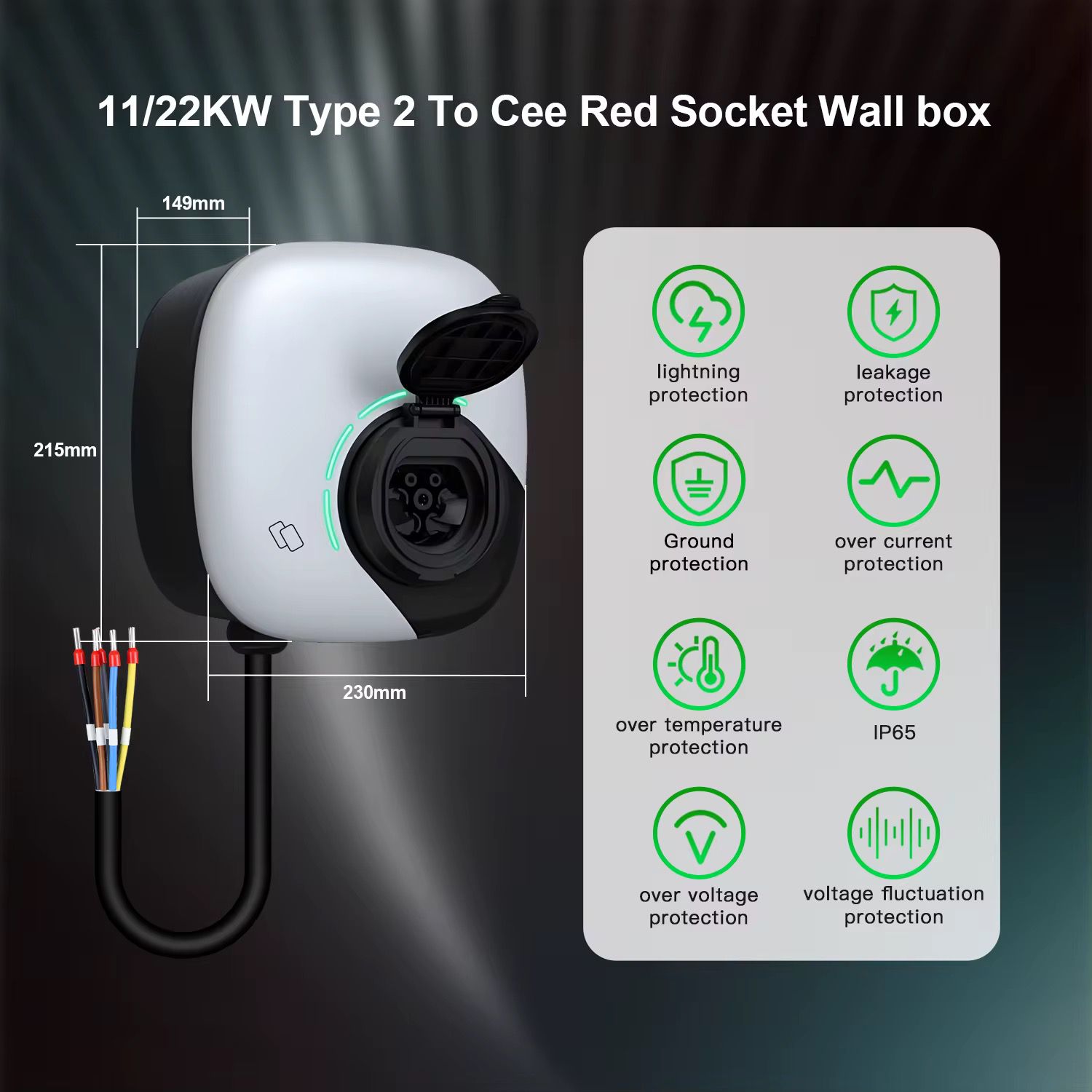 Bar2Charge Q1-Socket Laadpaal | 22 kW | TYPE 2 | 1 Fase & 3 Fase | IP65 | App Control - 22 kW (3 fase 32A) is nabesteld en wordt verzonden zodra het weer op voorraad is.